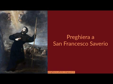 O amabilissimo e amatissimo San Francesco Saverio, con te adoro con riverenza la divina Maestà. Mi compiaccio degli specialissimi doni di grazia di cui Dio ti ha favorito durante la tua vita terrena e di quelli di gloria di cui ti ha arricchito dopo la morte e vivamente lo ringrazio. Ti supplico con tutto l'affetto del mio cuore di chiedere per me, con la tua efficacissima intercessione, prima di tutto la grazia di vivere e morire santamente. Ti supplico inoltre di ottenermi la grazia...